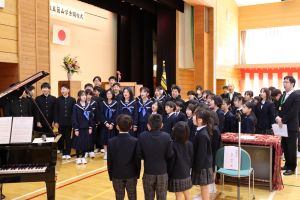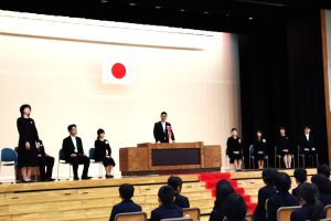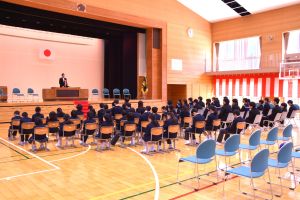 開校式に引き続いて、始業式など三つの式を行いました。新しい学校、新しい出会いに期待をふくらませていました。